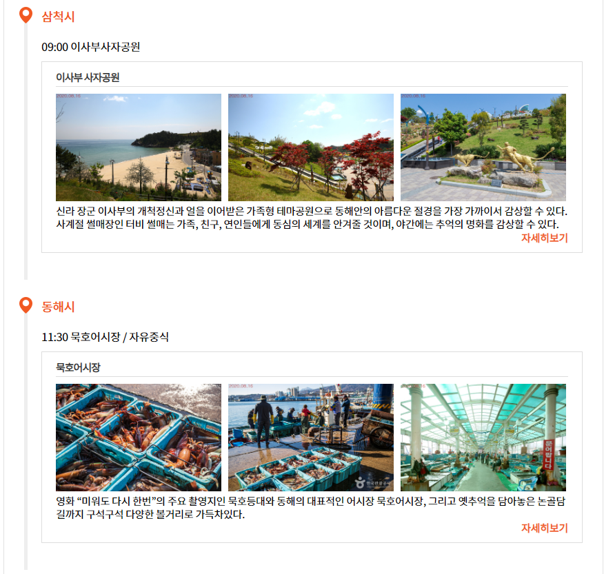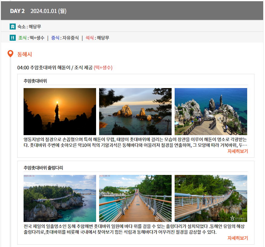 그리고 동해시로 이동하여 묵호어시장에서 회 한 접시 드시면 피로가 확 풀리실 겁니다. 이후 서울로 이동하는 상품입니다.