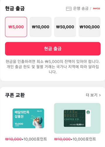 2. 현금으로 출금할지 아니면 다양한 포인트로 전환할지 물어보는 화면이 나옵니다.